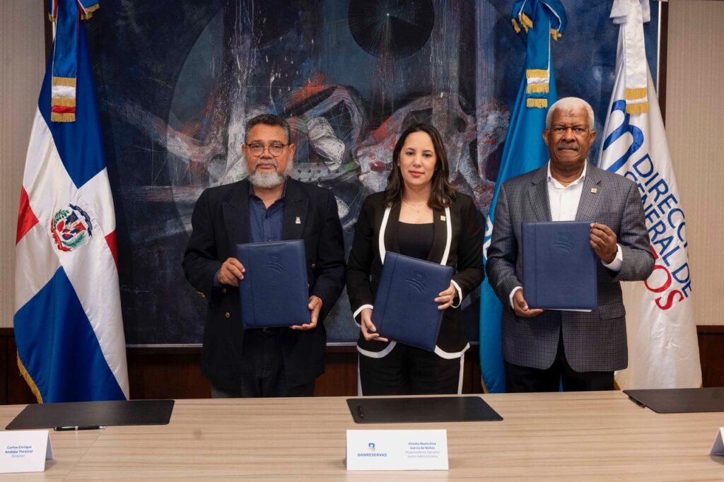 El convenio fue rubricado por Alieska Díaz, vicepresidenta ejecutiva senior Administrativa de Banreservas; Daniel García Archibald, vicepresidente de Relaciones Públicas de la entidad financiera, y Carlos Andújar, director del DGM.